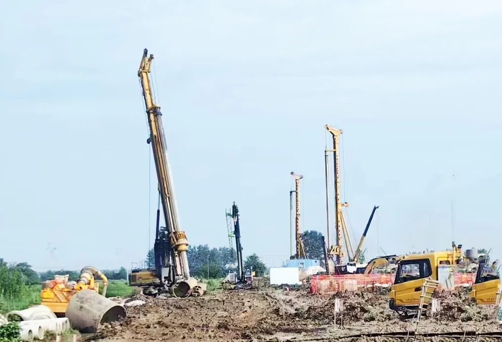 该项目HNTJ-8标段岩石硬度130兆帕以上,桩深超60米,桩径2.5米以上,是施工难度最大的一段,该段使用多台徐工55吨米级旋挖钻机。针对大孔、深桩、硬地层工况而专门开发的大吨位自制专用底盘旋挖钻机,广泛用于跨江、跨海大桥等大型工程中桩基础工程的施工。
