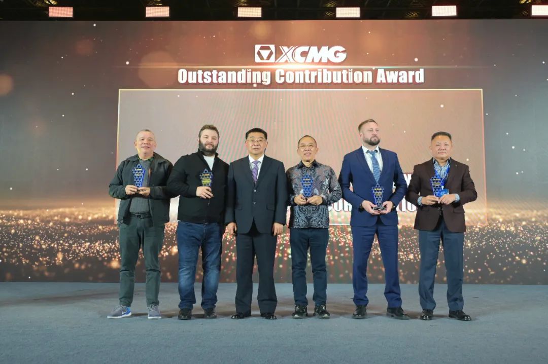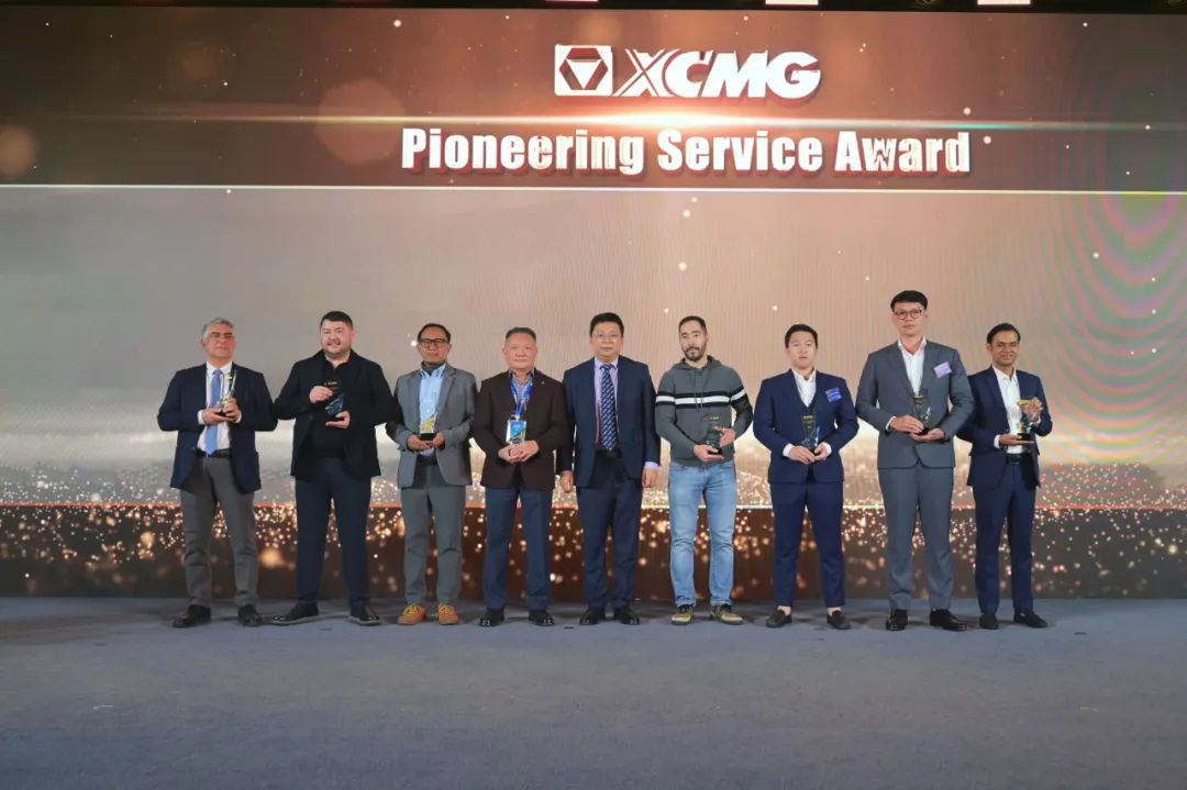 晚宴现场,颁发了服务领航、新锐先锋等相关奖项,以表彰为徐工发展做出卓越贡献的合作伙伴。在现场,徐工与多名海外大客户签订多个海外大单。