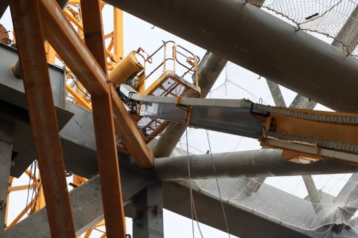 忙碌的工地上,随处可见“徐工金”辛劳的身影。此次参与施工的有四十余台徐工高空作业平台,高度从22米到40米不等,主要负责场馆钢结构的安装工作。