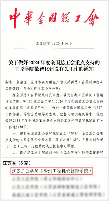 10月,中华全国总工会公布100家重点支持工匠学院名单,学院榜上有名,成为江苏省5家获重点支持单位之一,也是徐州市唯一一家。年内,学院共获评4个人才培育创新平台,应邀在中国职协推进技工教育高质量特色发展座谈会等6个高端平台分享徐工企业办学技能育人创新实践,40余家媒体报道学院特色实践经验,聚合百万声量,社会美誉度持续提升。