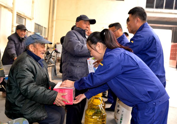 培训期间,好机手学员们自发捐款,从超市购买米、面、油、饮品等生活物资来到徐州铜山镇敬老院慰问孤寡老人。