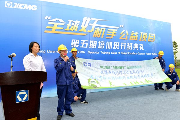 在开班仪式上,来自北方基础的好机手学员翁世坤说道:“我们要将‘徐工,让世界更美好’的公益理念传承下去,争做徐工大爱的传播使者!”